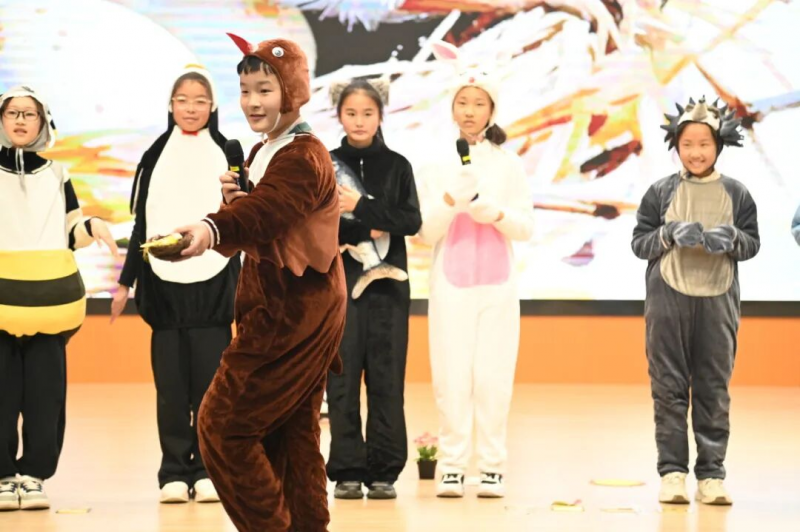 12月30日下午,以“科技筑梦未来,英语畅联世界”为主题的第五届英语节在闭幕式精彩展演与荣耀颁奖中圆满落下帷幕。闭幕式上,副校长曹旭芳致辞,她充分肯定了同学们在英语节期间的出色表现与成长进步,并对辛勤筹备的老师们表示感谢,同时也对学校英语教育的发展寄予美好展望。随后,各年级学生带来了精心准备的节目:一2、一3班萌娃们带来充满活力的《Action Song》,稚嫩歌声与灵动舞姿点燃全场;三5班同学通过趣味儿歌《How's the weather?》生动演绎天气知识,让科普学习趣味盎然。四年级与六年级学生代表联袂呈现“云小蚕项目”英语汇报,融合实践探究与英语表达;五年级的英语科普演讲铿锵有力。六2、六7班同学表演的英语AI科普短剧《Animal Secrets》,剧情创意十足,英语流利自如,科技感与观赏性兼备。每一个舞台都闪耀着云龙学子的探索光芒与表达自信。七年级学生的英文趣配音“声”临其境,八年级的“My Tech Treasure”科技小宝藏展演创意满满。最后,苏嘉怡与徐福泽老师合唱《Try everything》,励志的旋律将现场气氛推向高潮,也为展演环节画上圆满句号。